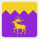 “Purpure, an elk passant and a chief indented Or.”
