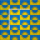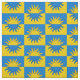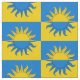 "Per fess azure and or, a sun counterchanged." Allover pattern of the populace badge for the Kingdom of Atenveldt in the Society for Creative Anachronism.
