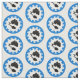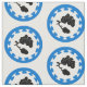 "Argent, in pale an oak leaf fesswise reversed embowed conjoined to an acorn sable, a border nebuly azure." Allover pattern of the populace badge for the Shire of Darach in the Society for Creative Anachronism.