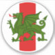 "Argent, a pale gules surmounted by a dragon passant vert."