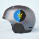 "Per pale azure and sable, a stalk of three cattails slipped and leaved or."
