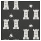 "Sable, two towers and in chief a mullet of three greater and six lesser points argent." Allover pattern of the populace badge for the Barony of Stargate in the Society for Creative Anachronism.