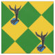"Per saltire or and vert, an eagle's leg erased sable holding a step-cut gemstone azure." Allover pattern of the populace badge for the Shire of Talonval in the Society for Creative Anachronism.