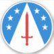 "Azure, on a pile inverted throughout between six mullets in annulo argent, in pale a sword palewise gules."