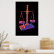 Scales of justice bright contrasting colours to balance the focal point on the scales of justice. This intriguing design is perfect to decorate the dorm of law majors, business college students, or law offices. Weigh the truth with this masterpiece!