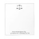 A simple and sophisticated Scales of Justice notepad design for your favorite attorney or law student. Simple name in black block lettering with a black scales of justice on the top. Perfect for law offices, law students, paralegals and more!
