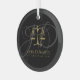 Professional ornament with scales of justice symbol and your text on a black background. Customise it.