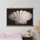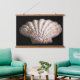 A still life photograph of a large scallop shell, with purple and orange lines, set up on a black background. Copyright ©Kimberly J Tilley.