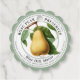 Personalise this elegant scallop preserves label with your Product Name, City & State, Net Weight, Declaration of Sustainability & Origin, and Ingredients List. Vintage Pear illustration. Contact info on back of label with small heart.