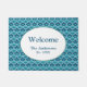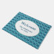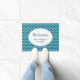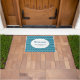 This easy to personalise doormat features a classic scallop design enhanced by small folk art inspired floral elements in wonderful ocean colours of teal, blue and green. All colours, including the background, may be edited to any hue for a custom look.