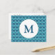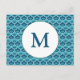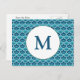 This monogrammed postcard features back text that is easy to customise for any a save the date announcement or any purpose and on the front there is a classic scallop design enhanced by small folk art inspired floral elements in wonderful sea colours of teal, blue and green. All colours, including the background, may be edited to any hue for a truly unique look.