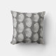 Throw pillow in a block print pattern, based on a scallop shell, in white on a graphite grey / grey background