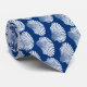 Tie in a block print pattern, based on a scallop shell, in white on a navy blue / indigo background
