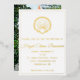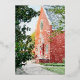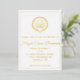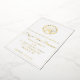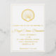 Foil baptism invitation with scallop shell and watercolor of church on the back.