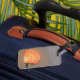 Of of the two luggage tags have some scratch on it.