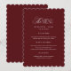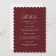 Set a refined tone with this burgundy wedding menu featuring an elegant scalloped edge silhouette and timeless old money aesthetic. The deep wine hue paired with classic typography creates a sophisticated look for a formal wedding reception, black tie celebration, rehearsal dinner, bridal shower, or upscale event. Perfect for fall weddings, European-inspired venues, and couples who love rich colour palettes with a luxurious, heritage feel.