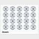 You can replace the display image with your QR code. There are two lines of black display text that you can edit to show a custom message. (Shown: Scan QR Code To RSVP) These stickers have black text in a white circle. The sticker has a deep blue border.