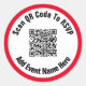 Scan QR Code To RSVP Event Name Black White Red Classic Round Sticker