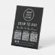 Simple black table top pedestal sign for your business with 3 QR codes linked to your payment apps for customers to scan for contactless mobile payments. Add your phone number and website in simple white lettering. Add your instagram and facebook user ids for customers to follow you on social media.