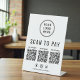 Simple modern table top pedestal sign with the option to upload 3 QR codes for different contactless payment apps. Upload your business logo and QR codes, and add your Instagram, Facebook and TikTok social media handle.