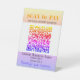 Scan to Pay Here Sign Custom QR Code tabletop sign option shoppers love. Make life simpler with a Custom QR Pay here sign at your craft booth, market stall, or shop. Pay here signs make checkout customer-friendly, fast and easy. Customise your business name and contact details. Display which electronic payment methods you accept so shoppers can scan and pay directly via their phone and tablet apps. Add your own QR code image and custom company logo to this Pay HERE sign.