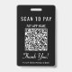 Get paid anywhere you do business with this clean, professional black Scan to Pay QR Code Badge. This lightweight badge lets customers send payment instantly with a quick scan -- perfect for mobile service, busy events, and on-the-go checkout. The minimalist layout features a bold call-to-action, a clearly centred QR code, a friendly “Thank You” message and modern white lettering. Upload your QR code, and add your payment app name and business name for a polished, branded look. Ideal for vendors, artists, bartenders, hair stylists, makeup artists, delivery drivers, market sellers, and event staff, this wearable payment badge keeps checkout fast, contactless, and convenient -- no counter space needed.