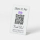 Simple modern table top pedestal sign for your business with a Zelle QR code for customers to scan for payments. Add your QR code, business name, phone number and street address in simple typography.