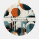 Create a special memory that will last a lifetime with our Scandi Groove custom ceramic ornament. This ornament is a beautiful keepsake, featuring our signature abstract design with a dynamic pattern of layered circles and vertical lines. The vibrant palette of deep teal, burnt orange, and cream is printed on a durable ceramic surface with a glossy finish, making it a bold and artistic addition to your tree or year-round decor.