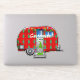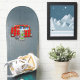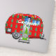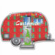 Cute rounded caravan travel trailer with a gnome in a green outfit, to customise, personalise by changing to your name on any background colour