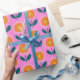 Cute Scandinavian Flowers in Pink and Orange Wrapping Paper