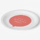 Simple, stylish and fun kids birthday party plate with your custom name text in modern typography in crisp white on a simple round balloon design in coral pink with a straight grey string in a minimalist Scandinavian 'Scandi' style. Add your kids name or the name of a loved one's child for a truly unique and bespoke party!