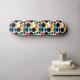 Seamless Repeat Geometric Scandinavian Nordic bauhaus Style Mid century Red, black, yellow, blue and green circles and semi circle shapes Decorative Modern Pattern Design on white background