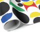 Seamless Repeat Geometric Scandinavian Nordic bauhaus Style Mid century Red, black, yellow, blue and green circles and semi circle shapes Decorative Modern Pattern Design on white background