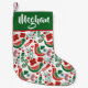 NewParkLane - Christmas Stockings, with a traditional Scandinavian Christmas Pattern of flowers and birds in red and green, and a text template for your name, for a personalised design.