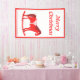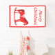 This awesome Christmas banner features a digital art image of a cute Scandinavian style rocking horse. The horse is red with a dark red mane, tail and hooves. The friendly horse is smiling. It has a white saddle and reins with pretty red Scandi folk style patterns on the saddle including the sun, moon and stars and hearts and flowers. The base of the rocking horse is red and is covered in pretty white leaves. The design was inspired by the Swedish Dala horse. There is custom text so you can personalise this design with your own message.