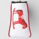 This awesome Christmas golf putter cover features a digital art image of a cute Scandinavian style rocking horse. The horse is red with a dark red mane, tail and hooves. The friendly horse is smiling. It has a white saddle and reins with pretty red Scandi folk style patterns on the saddle including the sun, moon and stars and hearts and flowers. The base of the rocking horse is red and is covered in pretty white leaves. The design was inspired by the Swedish Dala horse.