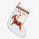 Folksy julbock stocking in traditional Scandinavian Christmas style. A decorative Christmas straw goat, folk braid and a carved reindeer horn button. God jul! Illustrated by Anni Arts in the style of traditional Scandi folk paintings. Also see the coordinating Holiday stockings with folksy reindeer, decorative elk/moose and Dala folk toy horse illustrations, as well as other Scandinavian Christmas products and cards by Anni Arts. You can customise the message.