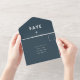 Simple, stylish wedding all-in-one invitation in a modern minimalist scandi scandinavian design style with a contemporary typography in white on a dusky smoke blue background in an informal casual style. The text can easily be personalised for a unique one of a kind design for your special day including tear off RSVP card.