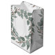 Embrace the "Quiet Luxury" trend with this minimalist eucalyptus and willow wreath gift bag. The muted silver-green palette and clean white background reflect a Scandinavian-inspired spring aesthetic. It is a versatile and chic choice for understated Easter gifting and modern home decor enthusiasts.