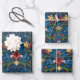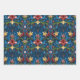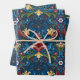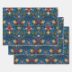 Scandinavian Folk Art Blue Red Floral Pattern Wrapping Paper Sheet
