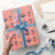 Scandinavian Folk Art Coral Blue Birds Flowers Wrapping Paper