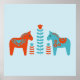 Scandinavian Folk Art Dala Horses and Flowers Poster