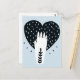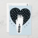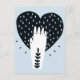 Postcard features Scandinavian / Nordic folk art black and white hand and heart graphic on light blue background