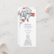 Inspired by the traditional Norwegian rosemaling painting style, this wedding program features a blue swirl circular border design with orange, grey and red flowers on a white background The text portions of this invitation are customisable. The front of the card features the order of events while the back of the card showcases the wedding party. This item is part of a collection, please visit our store Borghild's Boutique for other matching items.