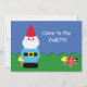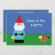 Scandinavian troll or gnome with mushrooms in bright whimsical cheerful colours of red, blue, green and yellow with white text which can be personalised for your special occasion. Perfect for Swedish, Norwegian, Danish or Finnish celebrations such as birthday parties, open house, anniversary, graduation, Christmas or other celebrations.