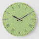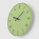 Light blue hand drawn simple leaves pattern on light green background Scandinavian style print with roman numeral clock face gives this clock versatility to go with modern, country, vintage or rustic decor themes