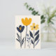 Lemon yellow petals stand tall over deep indigo leaves, centred on a neutral ivory background for clean, modern balance.