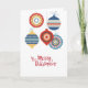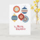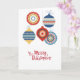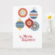 Christmas card with Scandinavian Ornaments on white background, and Merry Christmas lettering in red