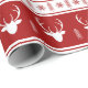 A Red And White Scandinavian Pattern Of Reindeer Heads And Snowflake Wrapping Paper For Christmas