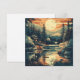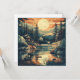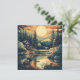 This card features a tranquil mountain scene rendered in a clean, retro, Scandinavian-inspired style. The design depicts a cosy lakeside cabin surrounded by majestic pine trees under a setting sun, evoking a sense of peaceful escape and natural beauty. The card's smooth surface provides an excellent canvas for the artwork's rich, earthy colours and simplified, mid-century forms, making it a perfect choice for any occasion that calls for a touch of serene charm. It's an ideal way to share a feeling of calm and a love for the outdoors with someone special.